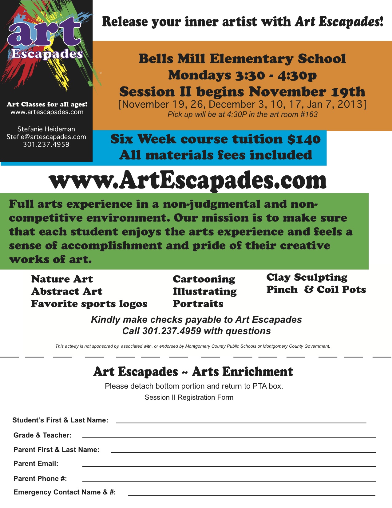 Art Escapades Bells Mill Flyer 2012 Session 2 Published 11/08/2012 at 1275 × 1651 in Art Escapades Bells Mill Flyer 2012 Session 2